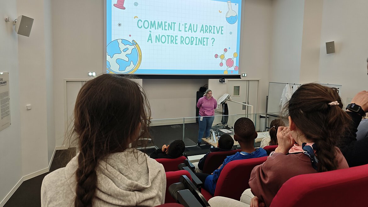 Le 26 mars dernier, une classe de CM1 - CM2 est venue pour réaliser une classe découverte sur la thématique de l'eau. Comment l'eau arrive à notre robinet ? L'eau est-elle propre dans les rivières ? Manon Dalla Costa, Doctorante du Lasire, a répondu à leurs questions