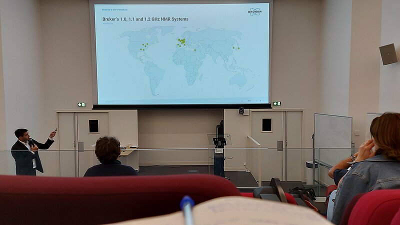 Cette journée thématique visait à faire le point sur les avancées scientifiques permises par ce spectromètre et plus généralement par les équipements RMN à ultra-hauts champs magnétiques. Lors de cette journée, des chercheurs internationaux et des utilisateurs français d’INFRANALYTICS ont présenté les nouvelles possibilités d’analyse et de caractérisation offertes par les spectromètres RMN à ultra-hauts champs dans différents domaines, allant de la chimie et la science des matériaux à la biologie structurale.